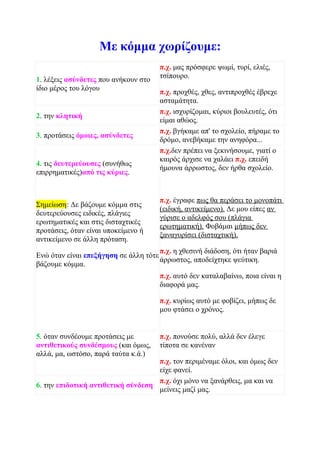 5. όταν συνδέουμε προτάσεις με π.χ. πονούσε πολύ, αλλά δεν έλεγε
