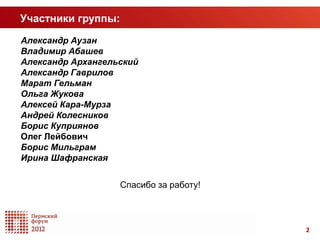 Документ содержит список участников группы и их идеи о культурной политике. Основные положения включают концепцию гражданина как субъекта культурной политики, согласие в несогласии и необходимость сложного подхода к взаимодействию. Выделены лозунги, отражающие эти идеи, такие как 'согласие по поводу несогласия' и 'начни с себя!'.