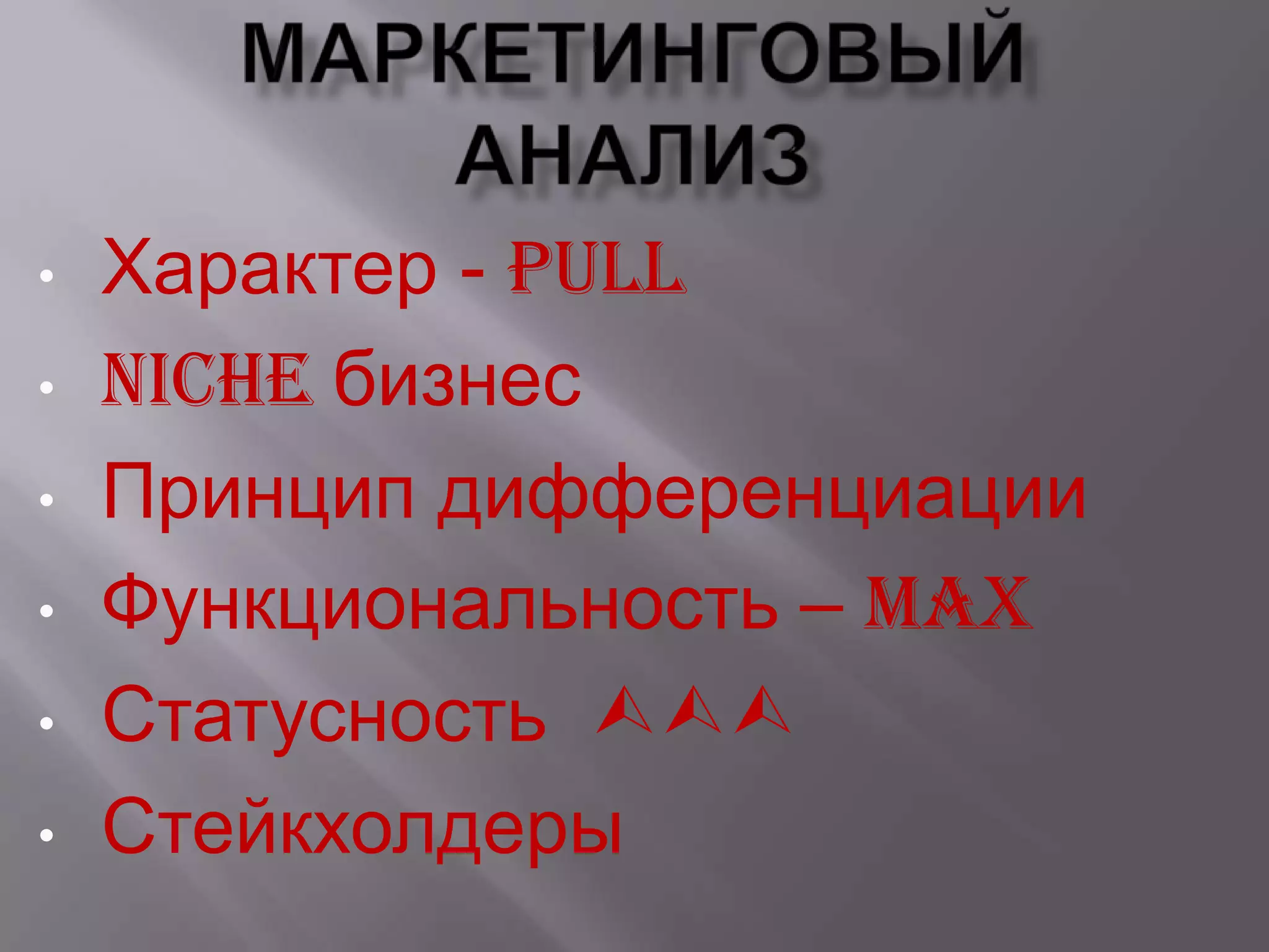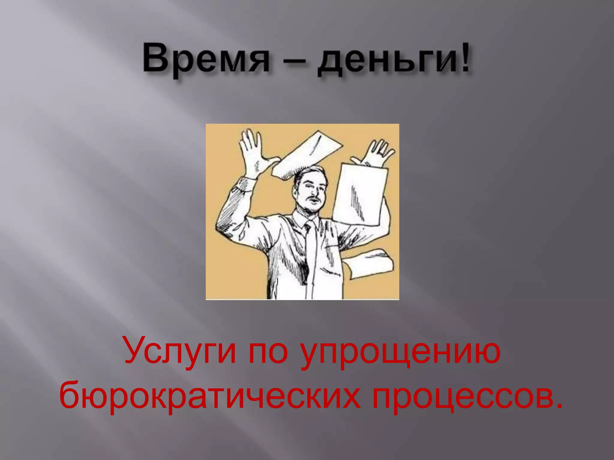 Документ описывает услуги по упрощению бюрократических процессов, ориентированные на нишевый рынок с акцентом на эксклюзивность и высокий уровень обслуживания. Указаны характеристики, такие как первоначальные инвестиции в 300.000$ и срок окупаемости 5 лет, а также структура команды на разных этапах развития. Основная цель включает создание корпоративного духа и системы мотивации для сотрудников.