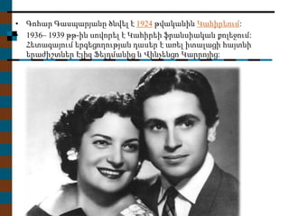 • Գոհար Գասպարյանըծնվել է 1924 թվականին Կահիրեում: