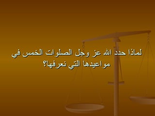 تناقش الوثيقة أهمية الصلوات الخمس ومواعيدها المحددة من قبل الله، موضحة الفوائد الروحية والجسدية لكل صلاة. كل صلاة لها خصائصها الخاصة وأثرها على المؤمنين، مثل براءة من النار والنفاق. كما تشير إلى عطاء الله للمؤمنين الذين يصلون بانتظام.