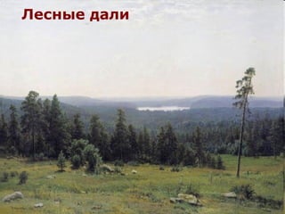 Документ описывает атмосферу туманного утра в различных лесах и парках. Упоминаются дубовая роща и сосновый лес, создавая живописные образы природы. В целом, текст передает умиротворение и красоту лесных пейзажей.