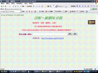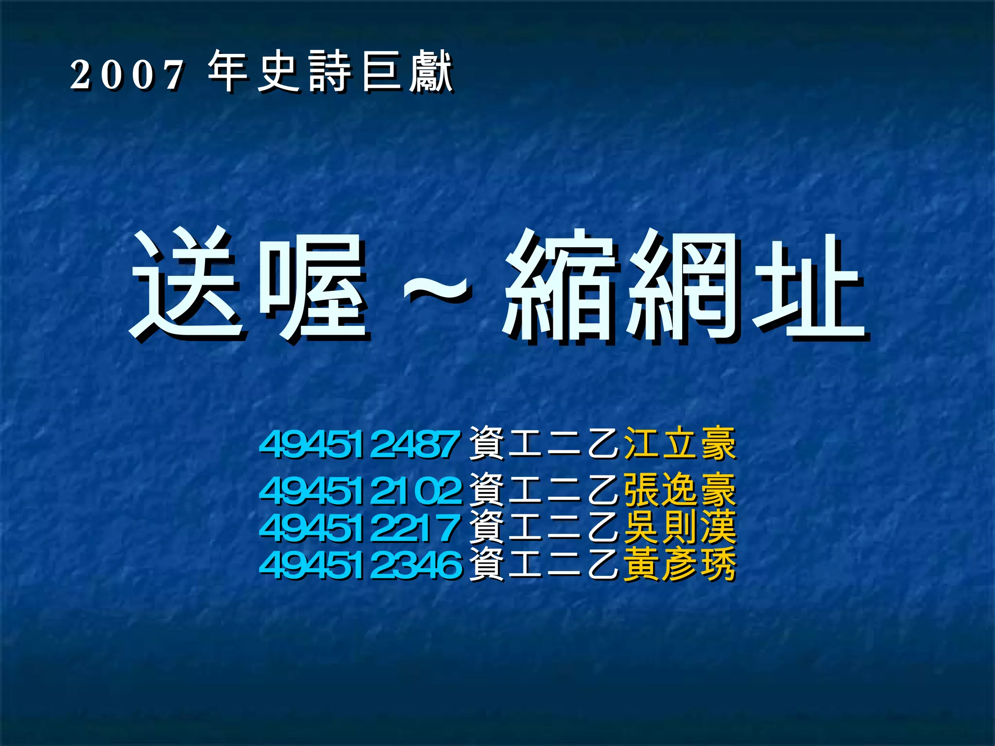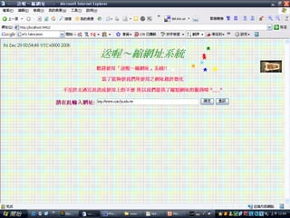 「送喔~縮網址」 ’ sFunction The Main Architecture of 「送喔~縮網址」 Generate a short URL When user click the short URL we generated Welcome index.php Generate submit return Received the Code Pre-browse Go to the URL Back to Google Correct incorrect