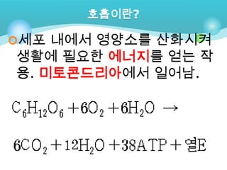 호 흡 2. 3. ATP : 호흡을 통해 생성된 에너지의