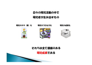 研究のネタ(種)も 研究のプロセスも 研究の成果も