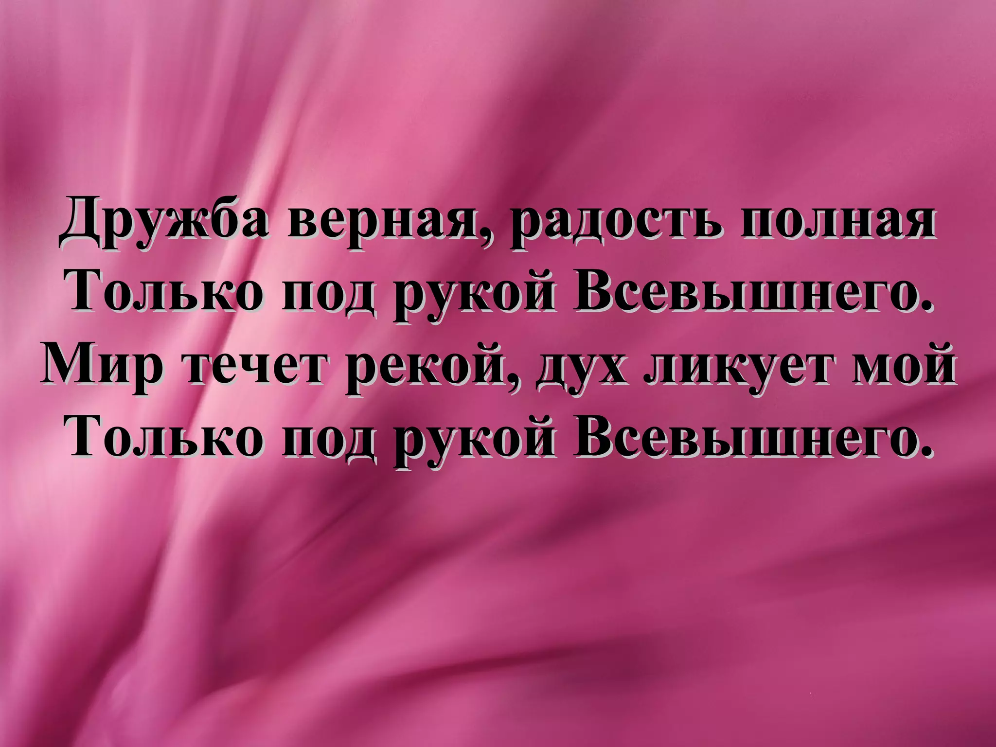 Документ описывает важность верной дружбы и близости к Богу как источнику радости и уверенности. Он подчеркивает, что в сложные моменты и при встрече с врагами человек может рассчитывать на защиту и поддержку Всевышнего. Основная мысль заключается в том, что только под руководством Бога человек находит мир и счастье в жизни.