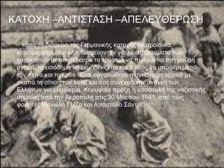 ΚΑΤΟΧΗ –ΑΝΤΙΣΤΑΣΗ –ΑΠΕΛΕΥΘΕΡΩΣΗ