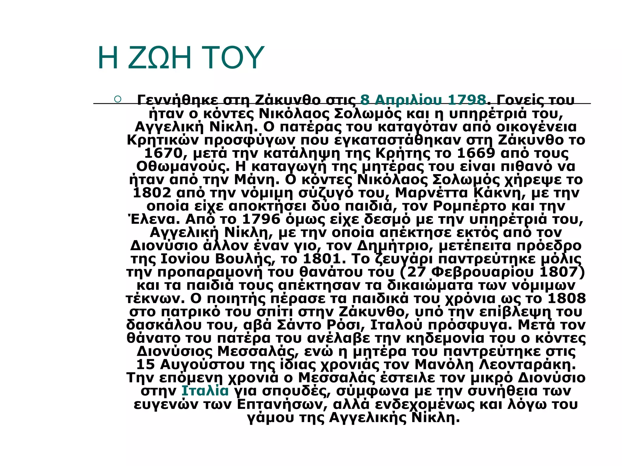 στη Ζάκυνθο ο Σολωμός εκπληρώνει το ιδανικό του,
