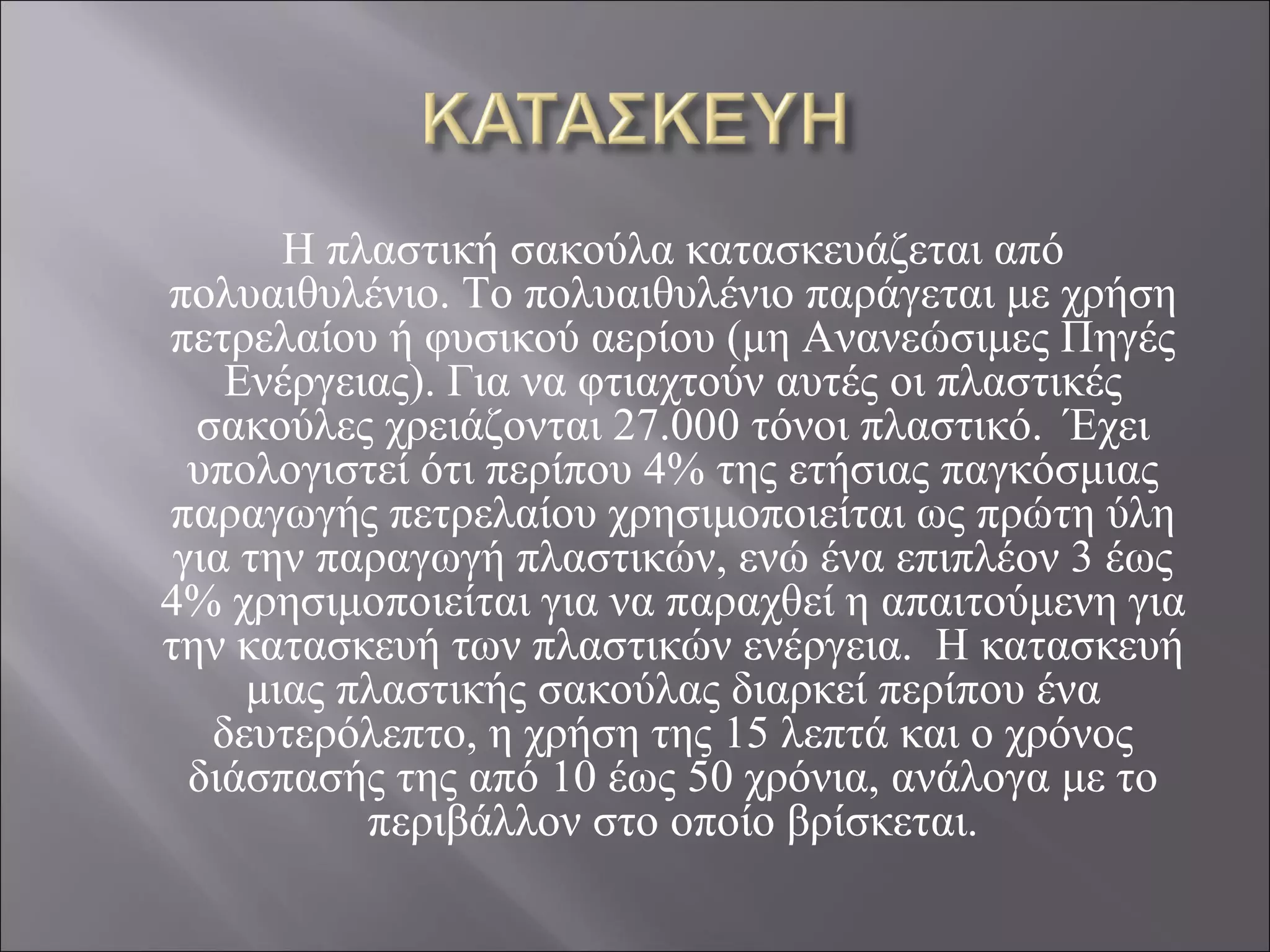 σακούλες χρειάζονται 27.000 τόνοι πλαστικό. Έχει