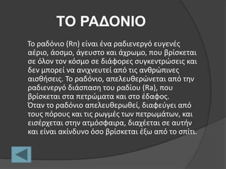 Σο ραδόνιο(Rn) είναι ζνα ραδιενεργό ευγενζσ