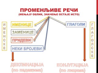 Заменице су променљивеврсте речи и упућују на бића, предмете и особине.