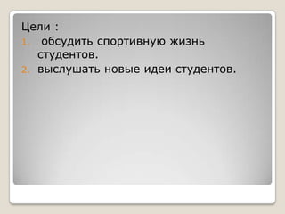 На конференции по занятию студентов спортивной деятельностью будут обсуждены идеи для улучшения спортивной жизни в вузе. Участники, включая студентов-спортсменов, представят свои презентации и идеи. Мероприятие начнется в 18:00 после ряда выступлений спикеров.
