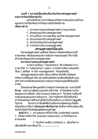 เศรษฐศาสตร์เบื้องต้นเเละความหมายของเศรษฐศาสตร์ PDF