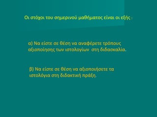 Οι στόχοι τουσημερινού μαθήματος είναι οι εξής :