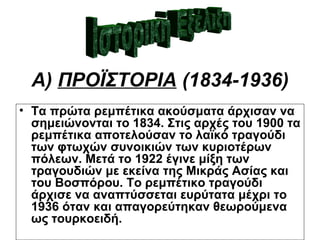•Τα πρώτα ρεμπέτικα ακούσματα άρχισαν να