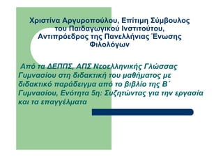 Γυµνασίου, Ενότητα 5η: Συζητώντας για την εργασία