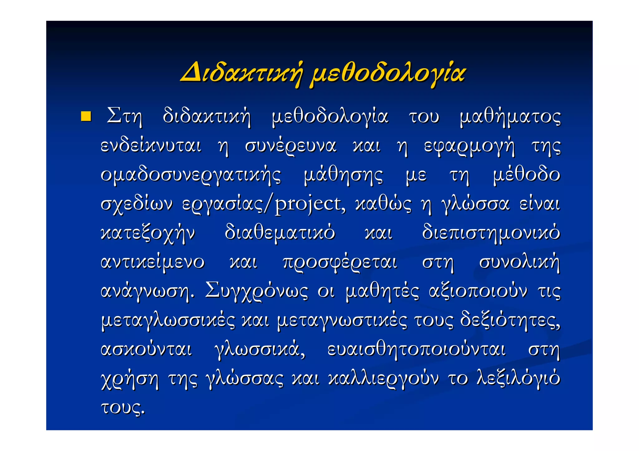 Στηδιδακτική µεθοδολογία του µαθήµατος