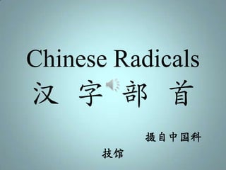该文档讨论了汉字部首的相关知识。内容来自中国科技馆,并提供了信息的来源链接。文档旨在增强读者对汉字部首的理解。