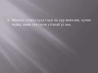 илэрхийлдэг. Монгол газар эртнээс тогтнож ирсэн