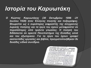 Παρίσι και ήταν πάντα άψογα ντυμένος με γραβάτα".. Λέγεται επίσης προφορικά, ότι "ο Καρυωτάκης