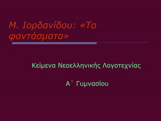 ΤΑ ΦΑΝΤΑΣΜΑΤΑ (ΜΑΡΙΑ ΙΟΡΔΑΝΙΔΟΥ) PPTX