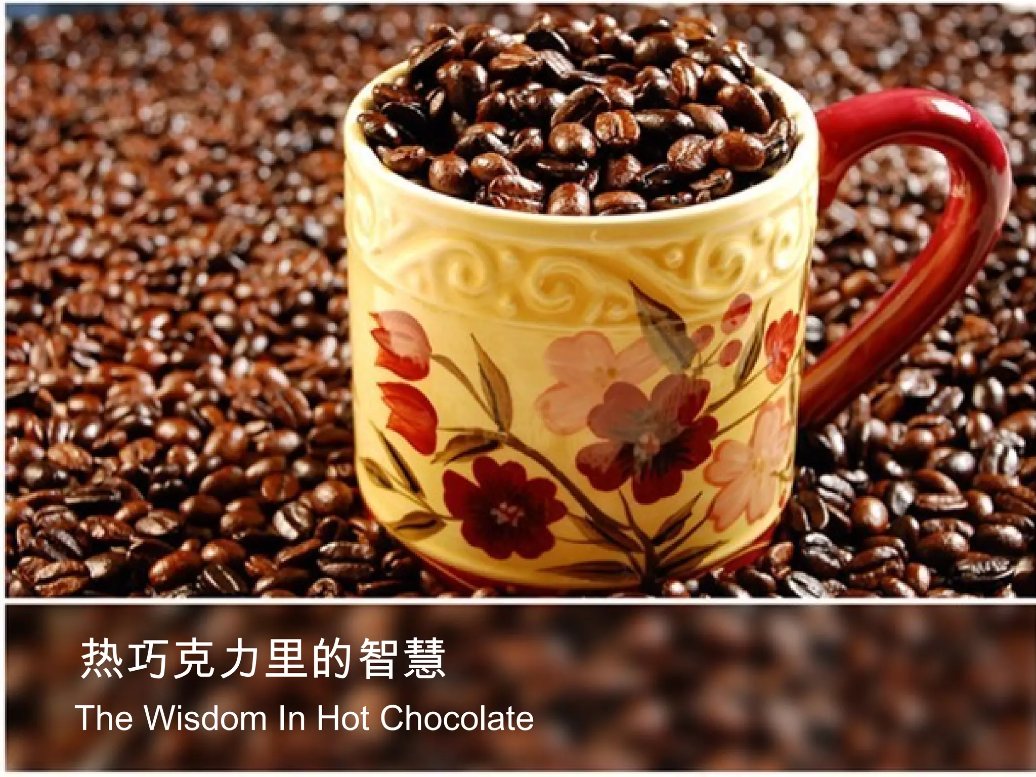 The professor shares wisdom with his former students over hot chocolate. He notes that they all took the nicer looking, more expensive cups to drink from, leaving the plain cups behind. The professor explains that the cup does not impact the quality of the hot chocolate, and that they are focusing too much on the cup rather than enjoying the hot chocolate itself. He says life is like the hot chocolate, and their jobs and status are like the cups - they are just tools to hold life, and don't define its quality. The professor encourages them to live simply, love generously, care for others, and speak kindly.