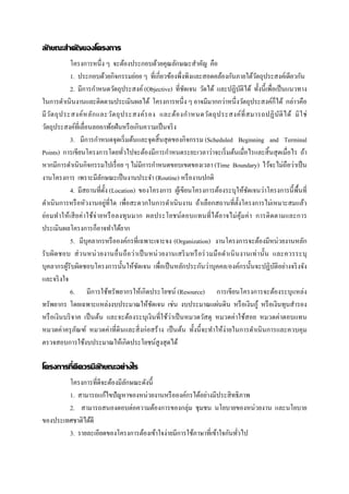 ลักษณะสําคัญของโครงการ กษณะสํ