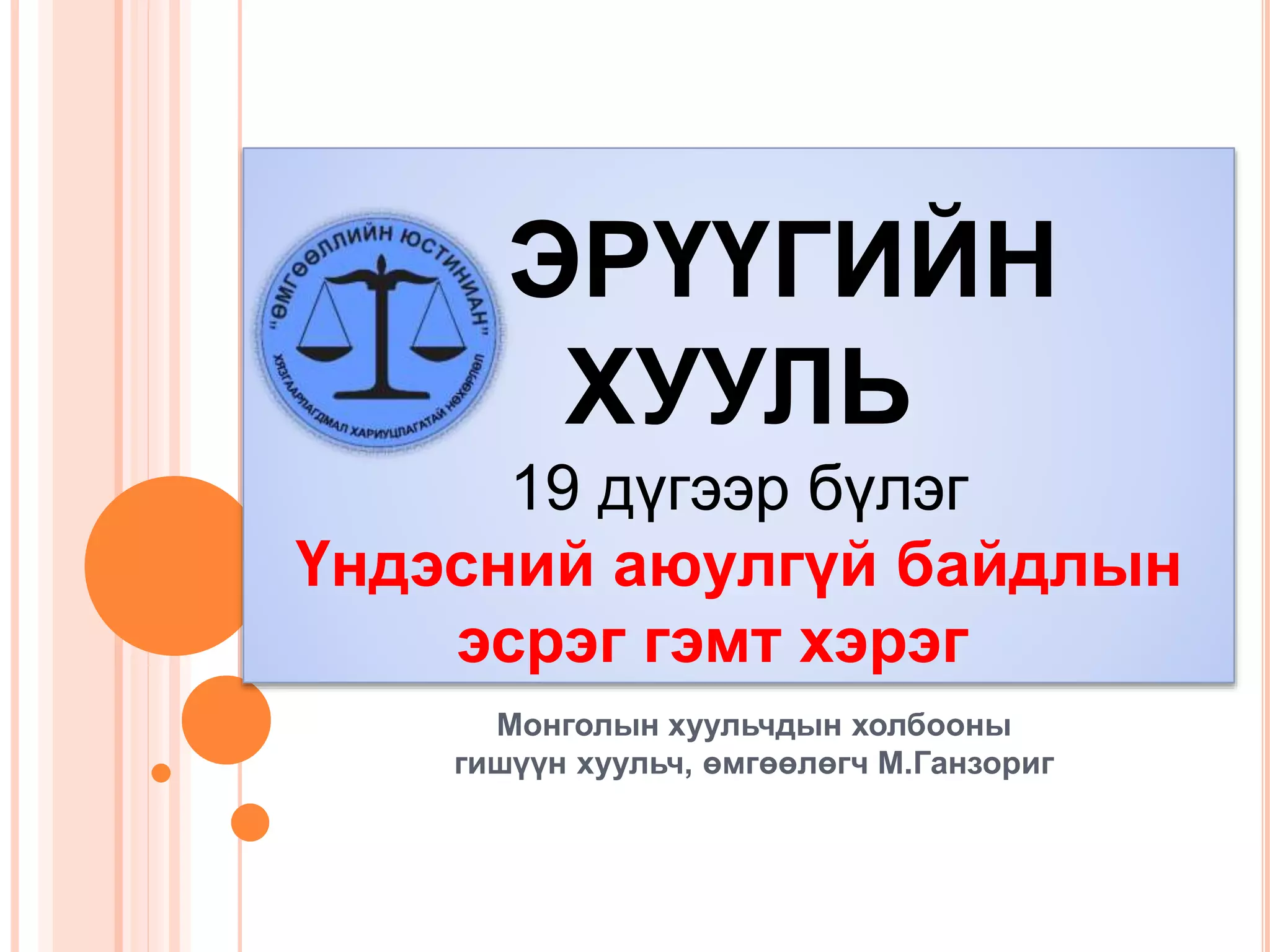 ЭРҮҮГИЙН ХУУЛЬ 19 дүгээр бүлэг Үндэсний
