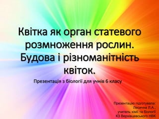 Квітка як орган статевого розмноження рослин. Будова і різноманітність квіток.