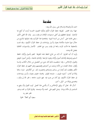 تتناول الوثيقة طريقة حفظ القرآن الكريم بناءً على فكرة الحصون الخمسة، والتي تهدف إلى تعزيز الإتقان في فترة زمنية قصيرة. تشتمل الطريقة على التحضير الأسبوعي، والليلي، والقبلي، بالإضافة إلى مراجعة القريب والبعيد، مع التأكيد على أهمية الإخلاص والمتابعة. يهدف الكاتب إلى توفير أسلوب فعّال استند إلى السنة النبوية لمساعدة المسلمين في حفظ القرآن.
