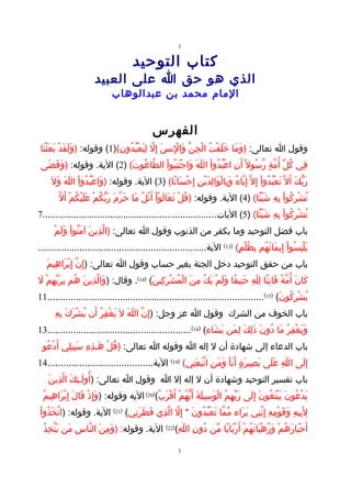 يتناول كتاب التوحيد للمؤلف محمد بن عبد الوهاب أسس ومبادئ التوحيد في الإسلام، مؤكداً على أهمية عبادة الله وحده وترك الشرك وضلالات العبادات. يتم استعراض العديد من الآيات القرآنية التي تدعو إلى توحيد الله وتجنب الشرك، بالإضافة إلى التحذير من الأعمال التي قد تؤدي إلى الغلو في الدين وعبادة غير الله. يقدم الكتاب أيضاً تفسيرات حول الشهادات الإيمانية وأساليب الدعوة في إطار العقيدة الإسلامية.