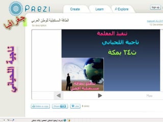 يتناول المستند دعوة للمشاركة في برنامج تعليمي خاص على منصة Prezi، حيث يوضح كيفية استخدام الأدوات المتاحة لإنشاء عروض تقديمية جذابة. يركز على خطوات التسجيل، تصميم المحتوى، بالإضافة إلى كيفية نشر العروض ومشاركتها عبر وسائل التواصل الاجتماعي. كما يُبرز أهمية التنوع والاحتراف في استخدام البرنامج لتحسين طرق التعليم والتواصل.