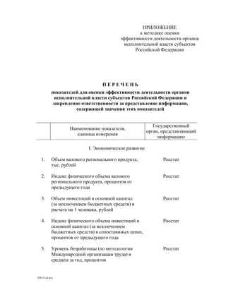Показатели оценки деятельности органов исполнительной власти субъектов рф