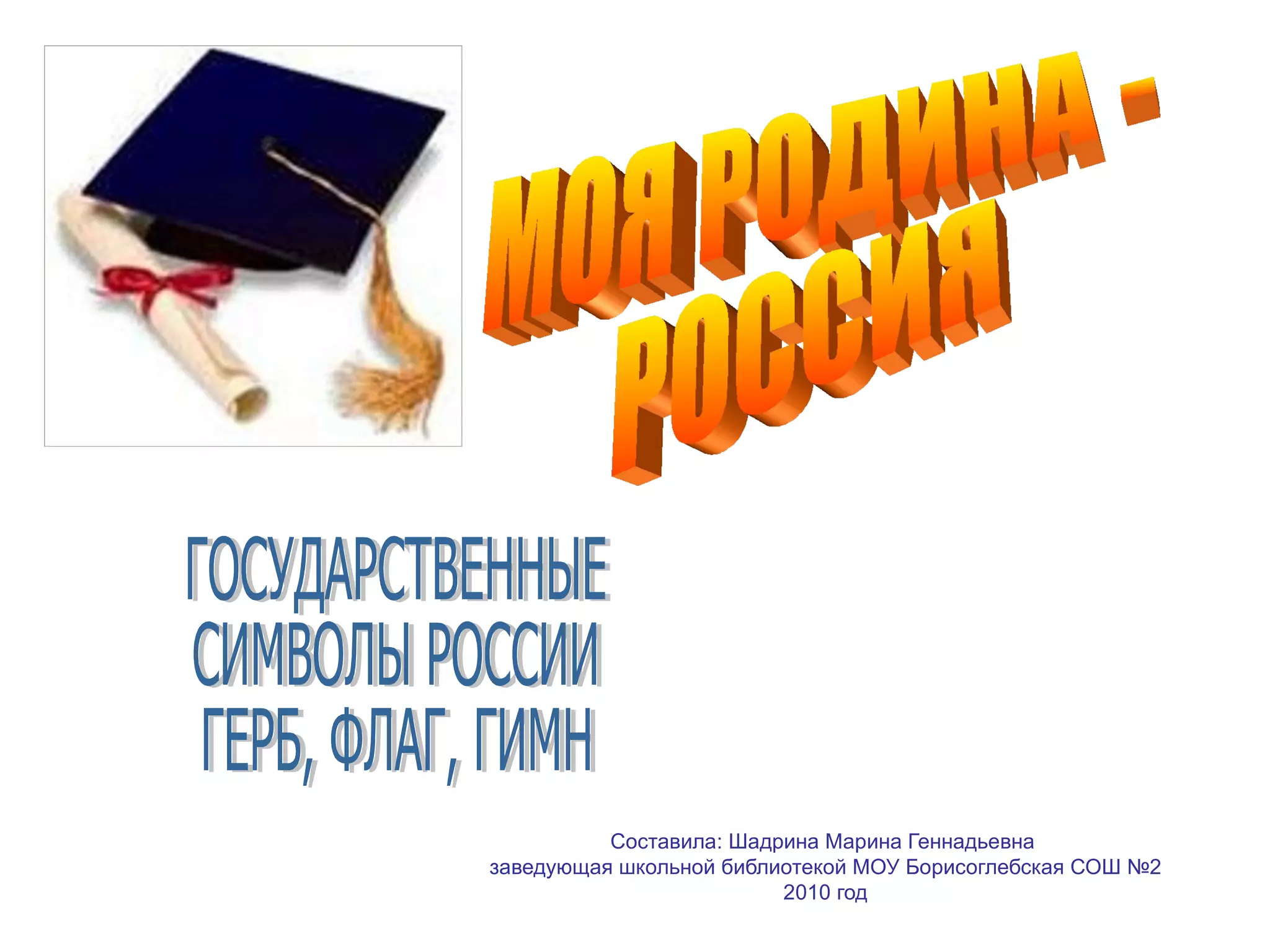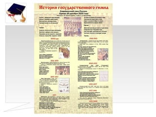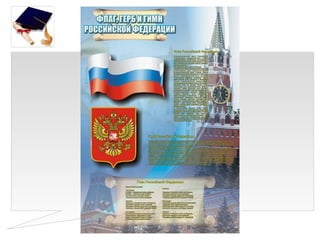Документ описывает государственные символы России, такие как герб, флаг и гимн, и их значение для народа и государства. Указывается на важность соблюдения уважения к символам и их роли в истории и объединении народов. Приводятся примеры символов различных республик и областей России, а также особенности их изображений.