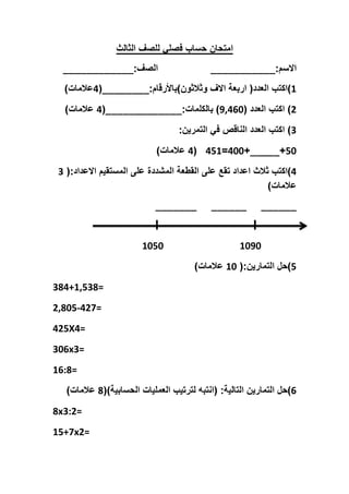 The document contains various math problems without showing the work or solutions. There are addition, subtraction, multiplication and division problems involving fractions, decimals, and variables. It also includes some inequality and comparison symbols but no full equations. The document ends with smiling emoji faces.