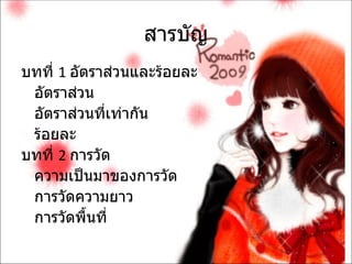 หน่วยที่1อัตราส่วนสัดส่วนและร้อยละ