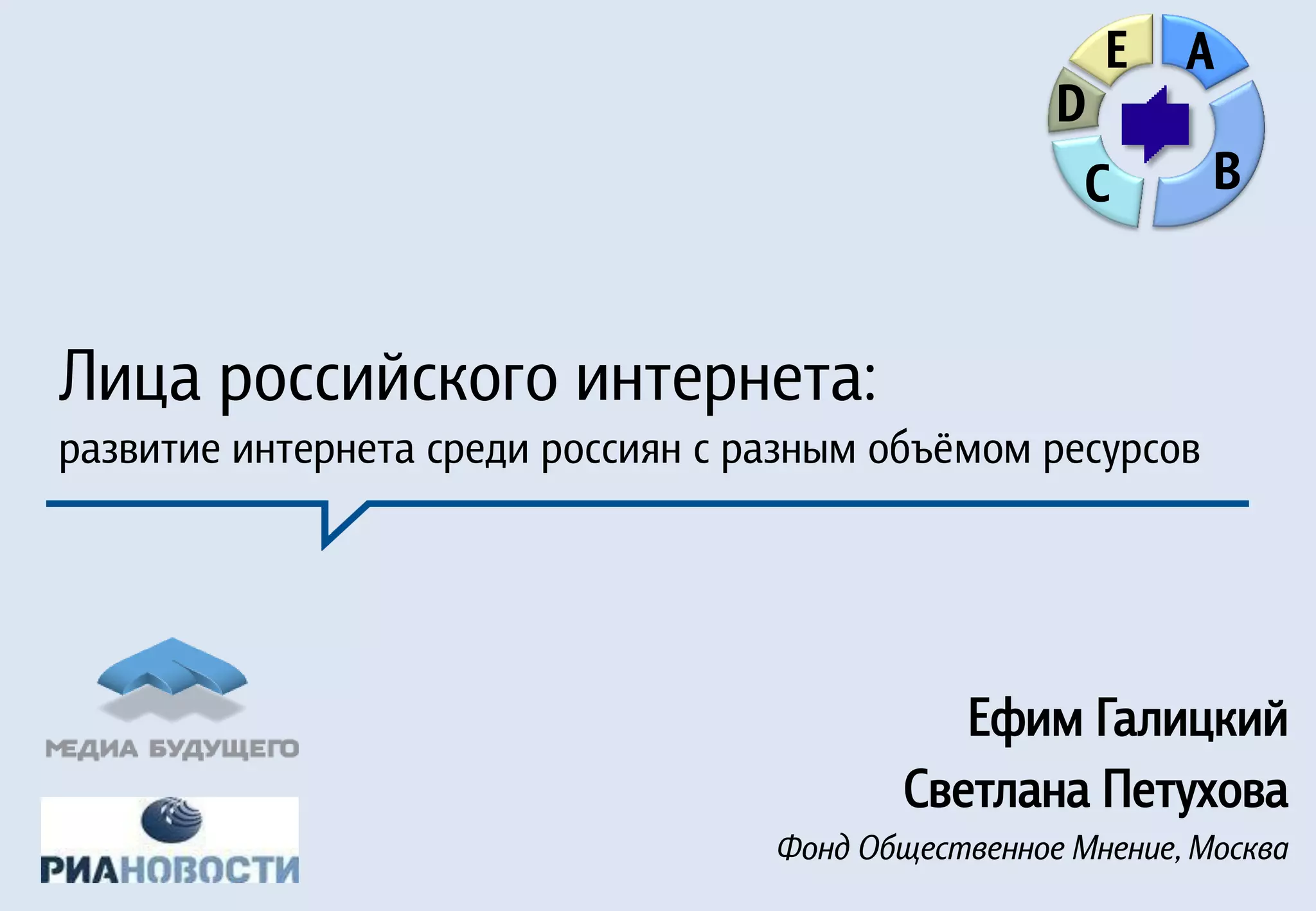 Документ анализирует интернет-аудиторию России, выделяя различные ресурсоемкие группы общества и их поведение в сети. Данные показывают различия в доступе к интернету, его использовании и восприятии среди высокоресурсных, среднересурсных и низкоресурсных пользователей. Исследование охватывает изменения в интернет-привычках, доверии к источникам информации и взглядам на легальный контент.