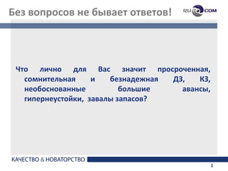 Документ рассматривает проблемы, связанные с ненадлежащим исполнением договоров и управлением оборотным капиталом в компаниях. Приводятся вопросы к ответственным лицам и предложения по улучшению контроля и отчетности. Поддерживается необходимость разработки стандартов управления оборотным капиталом и проведения инвентаризации.