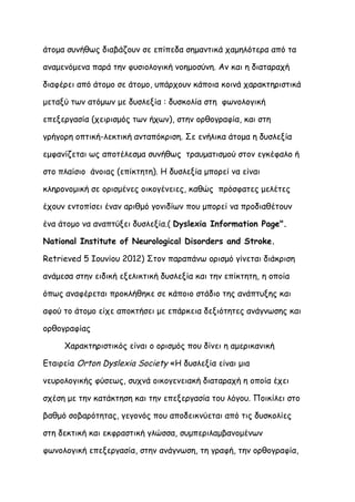 Neurological Disorders and Stroke είναι ότι η δυσλεξία είναι μια