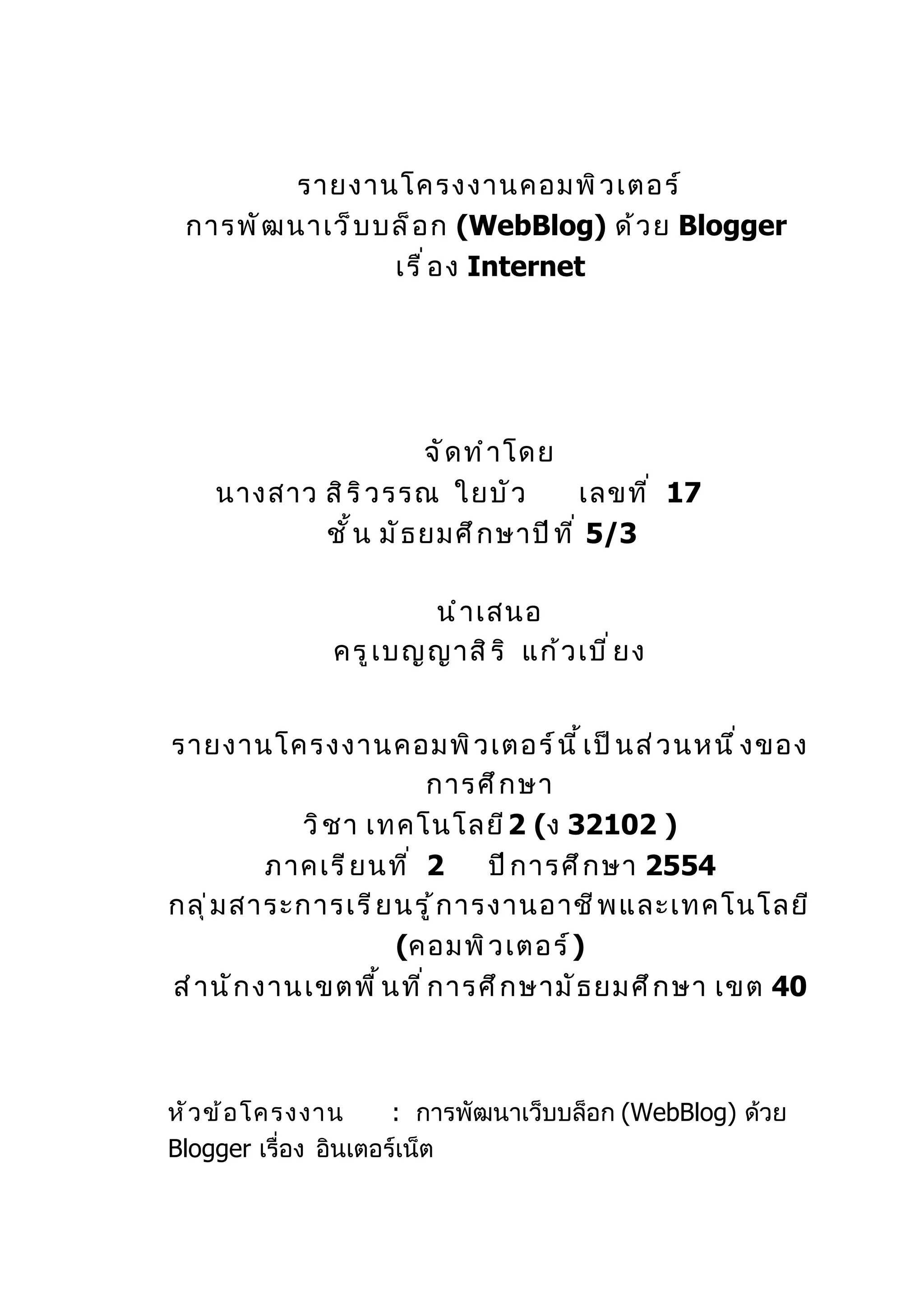 เรียนผ่านเว็บบล็อก www.siriwan17.blogspot.com ทังนี้ ทำาให้ ้