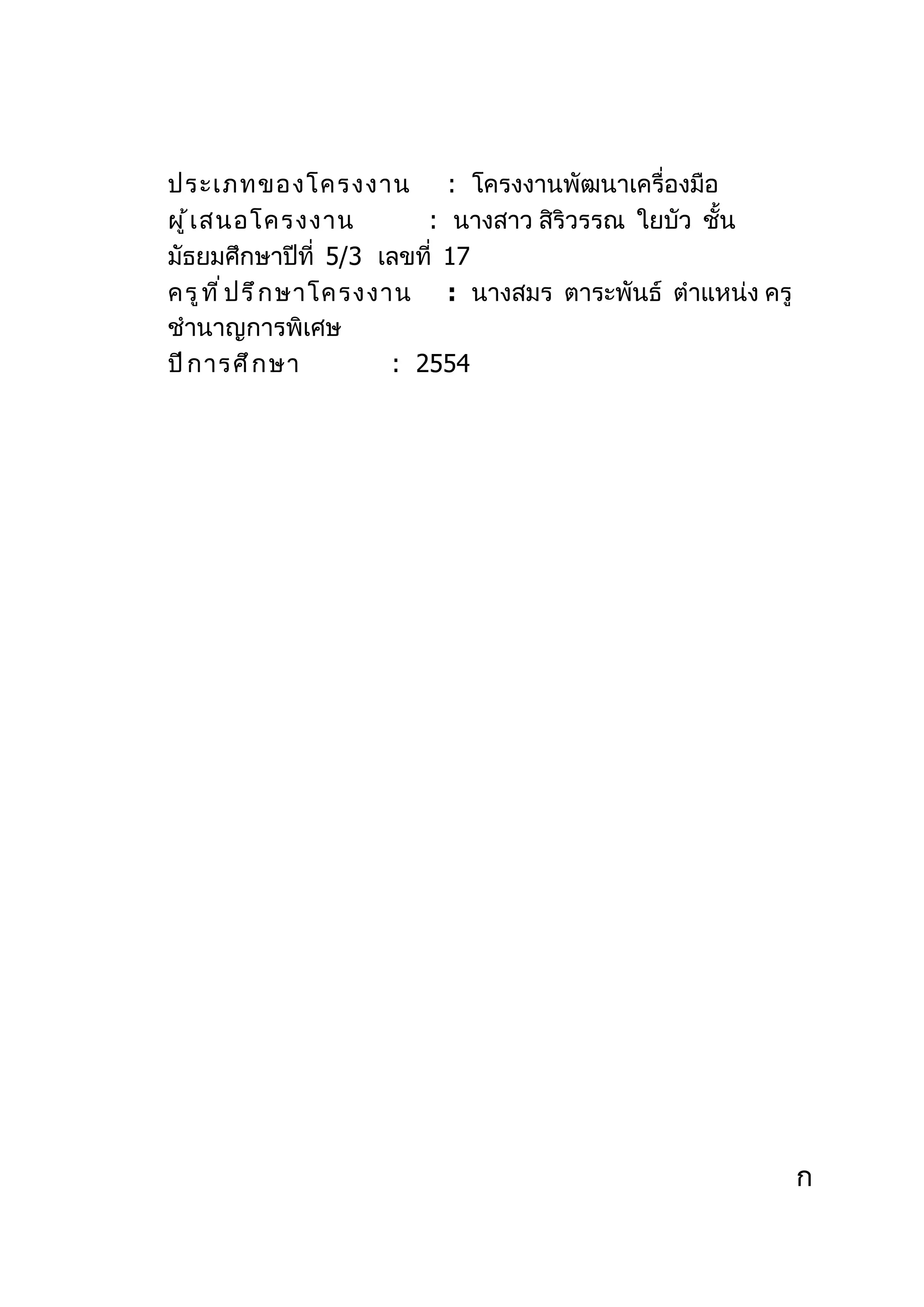 ประเภทของโครงงาน : โครงงานพัฒนาเครื่องมือ