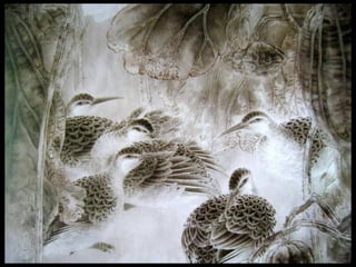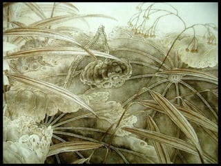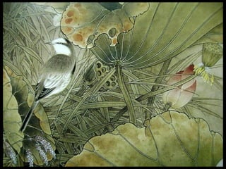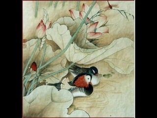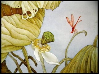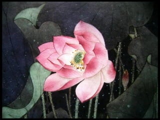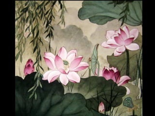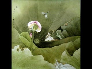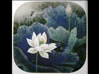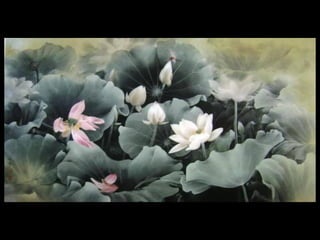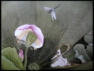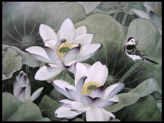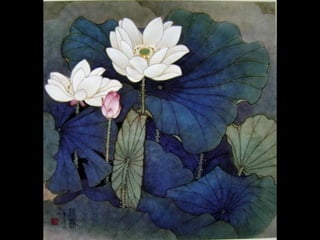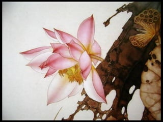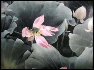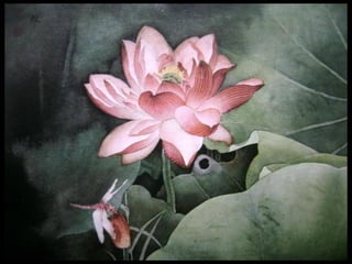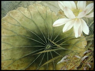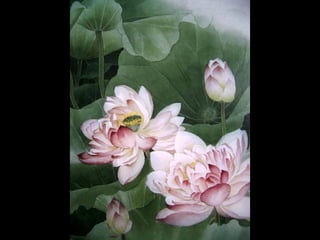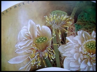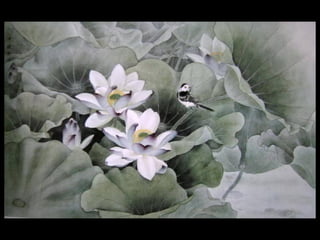 这是一篇关于名家工笔荷花的欣赏文章,主题围绕音乐与思乡情感展开,最后以感谢观赏结束。