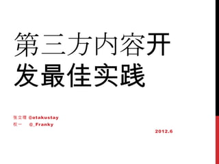本文件讨论了最佳实践用于管理第三方内容的开发,包括如何正确引入脚本、使用<iframe>和管理日志的上报。此外,文档详细介绍了与浏览器兼容性相关的问题和防止缓存的处理方法,以及如何处理flash元素的引入和删除。最后,涉及到的日志上报和cookie管理策略也被一一阐述。
