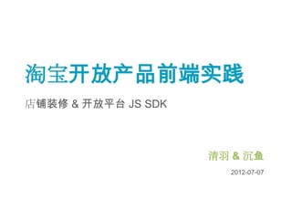 本文介绍了淘宝开放平台的店铺装修及JS SDK的实践,涵盖了店铺装修的模块化数据管理、展示及安全性等方面的内容。此外,还探讨了开放平台JS SDK的安全授权机制和数据交互模型,强调了组件通信和代码隔离的重要性,以及未来的发展方向和参考资料。