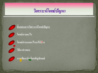 ขั้นตอนการวิเคราะห์ โจทย์ ปัญหา โจทย์