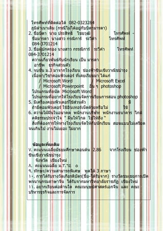 2. ชื่อบิดา นาย ประสิทธิ์ ไชยวุฒิ โทรศัพท์ -