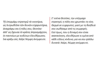 τη σωτηρία τους στην πολιούχο τους Θεοτόκο.