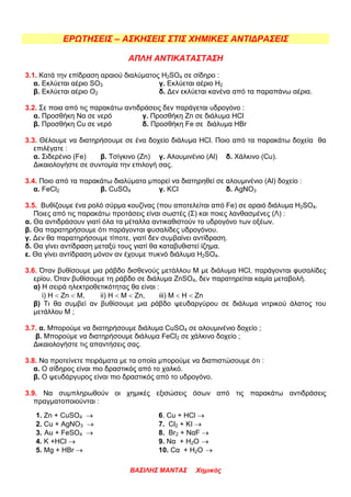 3.2. Σε ποια από τις παρακάτω αντιδράσεις δεν παράγεται υδρογόνο :