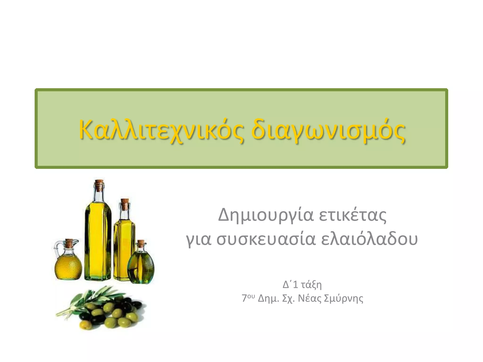Δημιουργία ετικζτασ για ςυςκευαςία ελαιόλαδου Δ΄1 τάξη 7ου Δημ. Σχ. Νζασ Σμφρνησ