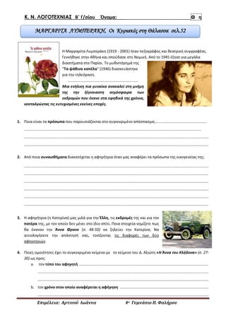 1. Ποια είναι τα πρόσωπα που παρουσιάζονται στο συγκεκριμένο απόσπασμα;.................................................